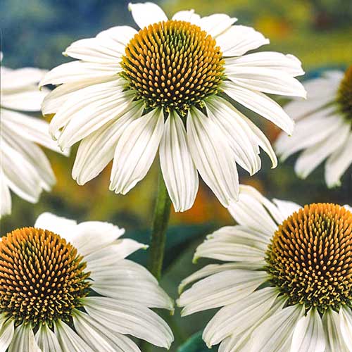 Ехінацея Вайт Сван розкривається білими квітками з опуклою рудувато-червоною серцевиною. Підстава пелюсток забарвлена в салатовий колір. Діаметр в розпуску — 10−12 см. Через витончено схилені і відігнуті донизу пелюстки сорт отримав назву «білий лебідь».