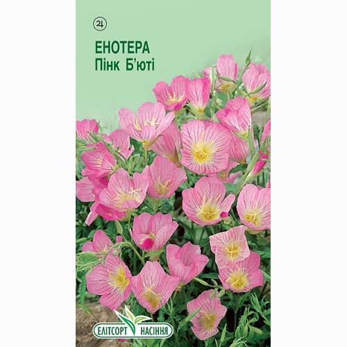 Енотера Пінк Бьюті – морозостійка багаторічна рослина. Кущ розлогий, висотою до 30 см. Квітки великі, до 10 см у діаметрі, яскраво-рожевого забарвлення, з сильним приємним ароматом. Цвіте із червня протягом трьох місяців. Насіння висівають у травні-червні в ґрунт. При температурі 18–21°С сходи з'являються на 12–16 день. Краще росте на сонячних ділянках із легким ґрунтом. Використовують переважно у групових посадках та альпінаріях.