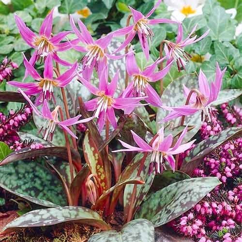 Еритроніум Денс Каніс - невибагливий цибулинний багаторічник, який вважається садовим екзотом. Зовні рослина схожа на цикломен, не призначений для вирощування у відкритому ґрунті. Однак він прекрасно зимує в будь-якій смузі без укриття і швидко розмножується, утворюючи цілі галявини ніжно-лілових квіток заввишки близько 30 см. Ще одна перевага кандика - в широкому декоративному листі, вкритому червоними смугами і цяточками, що утворюють впізнаваний мармуровий візерунок. Цвітіння починається в травні-червні і триває 4 тижні. Клумба зберігає декоративність до початку осені завдяки ефектному листю.