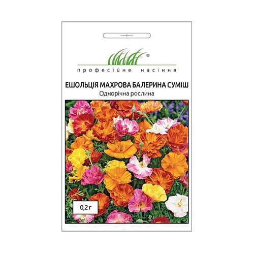 Ешшольція махрова Балерина - невибаглива однорічна рослина з неймовірно ніжними махровими квітами та ажурним сріблясто-зеленим листям. Висота 25-30 см. Цвітіння рясне і тривале. Світлолюбна, посухостійка, холодостійка культура. Росте на будь-яких ґрунтах, крім глинистих і кислих. Безпосередньо на постійне місце насіння висівають наприкінці квітня - початку травня або в жовтні. Використовується для оформлення клумб, рабаток, бордюрів. Чудово виглядає в групових посадках з іншими рослинами.