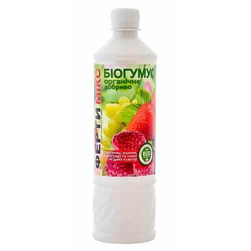 Фертимікс Біогумус для ягідних - підживлення, яке можна використовувати для удобрювання малини, полуниці, винограду, смородини та інших ягідних культур. Засіб стимулює активний розвиток кореневої системи, покращує смак плодів. Урожайність в результаті регулярного використання препарату підвищується на 30-40%.