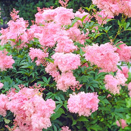 Філіпендула Венуста - це чарівна багаторічна рослина з філігранним пишним листям і об'ємними суцвіттями волотистого типу. Тисячі дрібних рожевих квіток утворюють ніжну хмару, що ширяє над клумбою. Висота рослини - від 150 см до 250 см. Невибаглива рослина прекрасно переносить літню спеку, цвіте з липня по серпень. Використовують для залучення бджіл, можна висаджувати поруч із пасікою - сорт відмінний медонос, для оформлення клумб, високих бордюрів і заднього плану квітників.