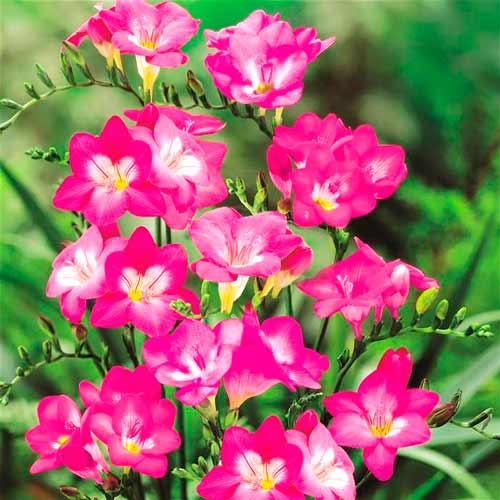 Завдяки своїм виразним квіткам фрезія Пінк додасть ландшафтному дизайну...трепету! Махрові квітки відрізняються своїм яскравим рожевим забарвлення, серединки прикрашені жовто-білими мазками. Невисокі рослини (25-30 см) чудово впишуться в комбінований квітник, де вже є іриси й гіацинти. Тонкий і неповторний аромат буде витати в повітрі протягом тривалого періоду — з квітня до серпня.