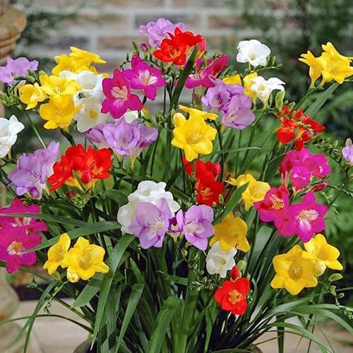 Фрезія Сінгл, мікс - це витончена цибулинна багаторічна рослина з оригінальними квітами різного забарвлення на химерно вигнутому голому квітконосі. Листя нагадує гладіолус, квіти за формою - широко відкриті дзвіночки з чудовим ароматом конвалії і туберози. Висота рослин не перевищує 20-25 см. Використовують для вирощування на зрізання, добре росте в теплицях на вигонку.