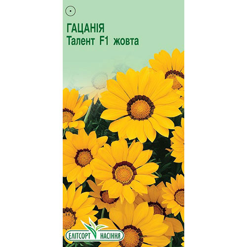 Гацанія Талент жовта F1 - красивий однорічник, який стане прекрасним доповненням для вашого саду. Рослина формує компактний кущик, висота якого не перевищує 30 сантиметрів. У період цвітіння на ньому з'являються великі квіти до восьми сантиметрів в діаметрі, пофарбовані в яскраво-жовтий колір.