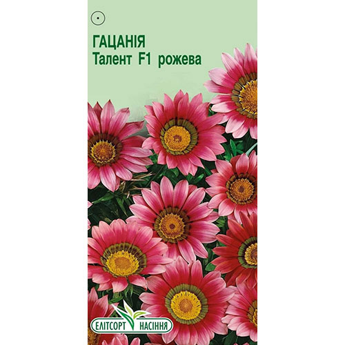 Гацанія Талент рожева F1 належить до однорічних трав'янистих рослин, але може рости і в вигляді напівчагарника. Володіє щільним листям зеленого кольору. У період цвітіння на акуратному кущику утворюються ніжно-рожеві махрові бутони, які досягають восьми сантиметрів в діаметрі.