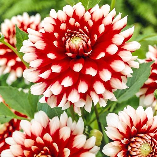 Жоржина Дует (Dahlia Duet) – популярна садова багаторічна рослина висотою близько метра. Квітки великі, діаметром до 16 см. У пелюсток дуже ефектне двоколірне забарвлення. Основний тон – бордово-червоний, а кінчики – білосніжні. Сорт належить до групи 5 – Декоративні жоржини. Підходить для новачків. Цвіте безперервно з липня по вересень. Садять квіти невеликими групами на задньому плані квітників. Культура придатна для зрізання.