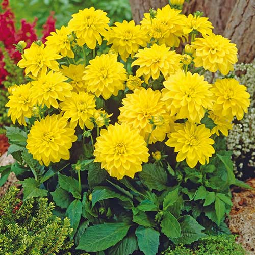 Жоржина Геллері Сезанн — нідерландський низькорослий сорт з висотою куща не більше 30 см. Рослина була виведена спеціально для оформлення бордюрів і створення живоплотів. Це ранні жоржини, що зацвітають до кінця травня та не припиняють ятати бутони до самої осені. Незважаючи на компактні розміри, квітка залишається досить великою — 10−15 см. Колір пелюсток — яскраво-жовтий. Сорт можна вирощувати у вазонах і підвісних контейнерах.
