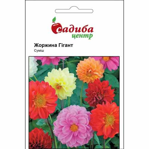 Жоржина Гігант – суміш однорічників різних відтінків із міцними стеблами до 1,5 м заввишки. Листя бронзово-червоне, бутонів формується багато. Їх діаметр дорівнює 10 см, а пелюстки можуть бути забарвлені у білий, жовтий, червоний або рожевий відтінки. Сорти можна висаджувати окремо і разом на одну клумбу – вони будуть гармоніювати між собою.