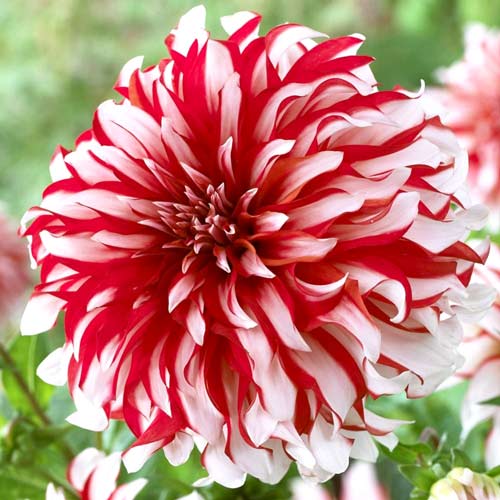 Цвіте в липні-вересні. Квіткові кошики складаються з пелюсток, у яких поєднуються насичені відтінки білого і червоного кольорів. Яскраве забарвлення приваблює увагу, а тривалий період цвітіння дозволяє довго милуватися такою красою. Рекомендується придбати жоржини Пенні Лейн як для зрізання, так і для оздоблення квітників у групових і змішаних посадках.