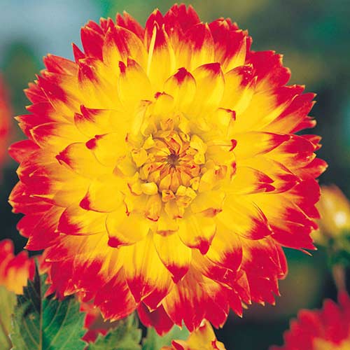 Жоржина Процион відрізняється тривалим цвітінням — з червня до середини осені. Пелюстки розсічені на кінчиках і зібрані в щільну кулю. Діаметр квітки в розкритому вигляді 12−15 см. Пелюстки виділяються переходом тонів: золотисто-жовті у серцевини, червоні та бордово-червоні ближче до кінчиків.