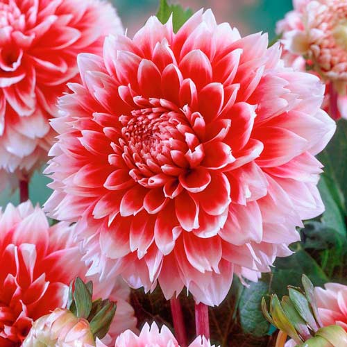 Жоржина Ред енд Вайт Фубукі (Dahlia Red and White Fubuki) – сорт, виведений голландськими селекціонерами у 2000 році. Висота його стебел сягає 100-120 см, а діаметр квіток – 15-20 см. Пелюстки забарвлені у червоно-рожевий, а їх кінчики підкреслені білим. Цвітіння стартує у середині літа. Жоржини доречні на задньому плані квітників та по центру клумб, ними маскують не дуже красиві стіни та паркани. Букети довго не гублять свіжості у вазах.