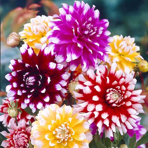 Жоржина Топ Уайт, мікс – набір барвистих бульбових багаторічників, які мають оригінальні махрові суцвіття яскравого соковитого забарвлення. На кінчику кожної пелюстки є контрастний мазок білого кольору. Ефектні квіти можуть мати бузкове, жовте, червоне забарвлення, але відмінна риса сорту – білі кінчики пелюсток.