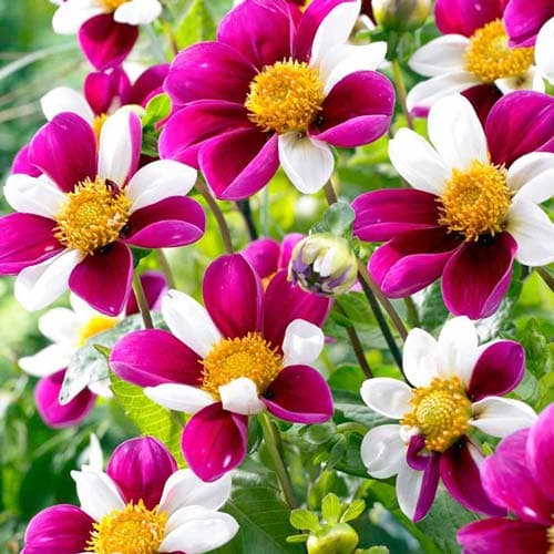 Георгіна Твайнінгс Смарті (Dahlia Twyning's Smartie) – унікальний представник немахрових сортів. Його незвичайність полягає в тому, що у кожного бутона деякі пелюстки білі, а інші – малиново-фіолетові. У поєднанні з жовто-помаранчевої серединкою квітка виглядає іще більш ошатнішою. Висота рослини досягає 70-80 см, а діаметр бутонів – 6-10 см. Цвітіння триває з липня по вересень. Висаджувати рослину краще окремо або в поєднанні з білими та фіолетовими сортами.
