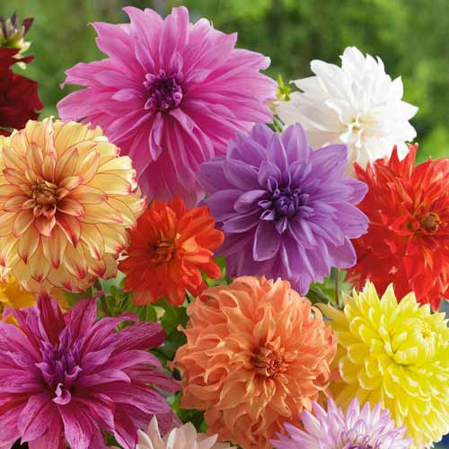 Жоржини Декоративні – надзвичайні за красою та вишуканістю різнокольорові махрові квіти. Класична форма квітки, великі розміри, елегантні яскраві пелюстки – замовити бульби жоржин Декоративних (мікс) можна не тільки для оздоблення садових клумб, а й для оформлення неперевершених за розкішшю та величчю живих букетів. У наборі зібрані рослини з різним забарвленням пелюсток.