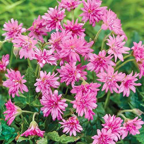 Герань садова Саускамбе Дабл (Geranium Southcombe Double) – махровий багаторічний рожевий сорт. Квітки виразні, утворені двома і більше ярусами сильно порізаних пелюсток, пониклі, зібрані в пухкі суцвіття по 3-5 штук. Кущ високий, до 80 см, щільний, діаметром близько півметра, з численними квітконосами. Віддає перевагу тіні і напівтіні, не вимагає зимового укриття.