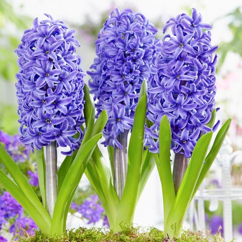 Гіацинти більш примхливі, ніж інші цибулинні, їм потрібні найсвітліші та захищені від вітру ділянки. Землю готують заздалегідь, вносять в неї до 2 відер перегною та повне мінеральне добриво (100-150 г/м²). Посадковий матеріал розміщують через 15-20 см на глибині, яка дорівнює трьом діаметрам цибулини. Якщо осінь суха – місце посадки треба полити. У вегетаційний період також варто підтримувати землю у ледь вологому стані.