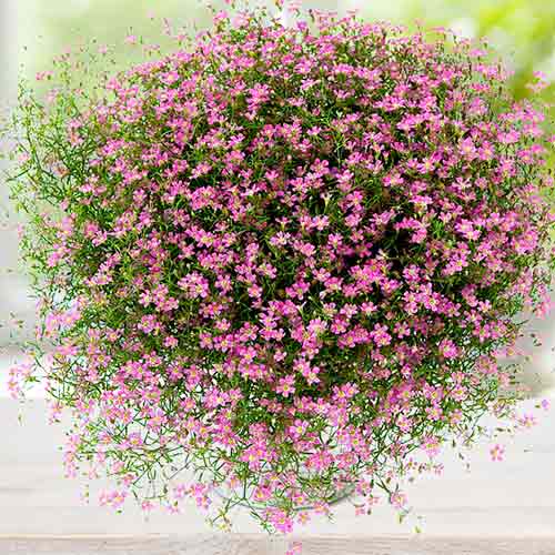Гипсофіла метельчата Пінк — трав'яниста багаторічна рослина формує кущ-сферу до 70 см заввишки. Візуальний ефект «хмари» рослині надають сильно розгалужені стебла та чарівні суцвіття-мітелки з махровими рожевими квіточками. Гипсофіла зацвітає наприкінці червня і зберігає декоративність до 1,5-2 місяців.