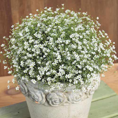 Замовте кореневища гіпсофіли метельчатої White — ажурний кущ, покритий хмарою білосніжних суцвіть, підкреслить розкіш троянд і вишукану красу лілій. Сорт хороший і в солітерній посадці, а зрізані гілочки використовують для аранжування.