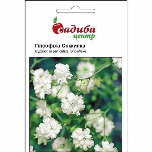 Гіпсофіла Сніжинка – рослина з сімейства гвоздикових. Її назва переводиться як «любляча вапно», тому що в природі культура росте переважно на вапняках. Волотисті суцвіття складаються із білосніжних квіточок діаметром менше 1 см. Вони густо вкривають кулястий кущ до 70 см заввишки і захоплюють своєю зворушливою ніжністю. В народі рослину часто називають «вуаль нареченої». Квіти прекрасно виглядають на клумбі і гармонійно доповнюють декоративні букети. Їх можна використовувати у засушеному вигляді.