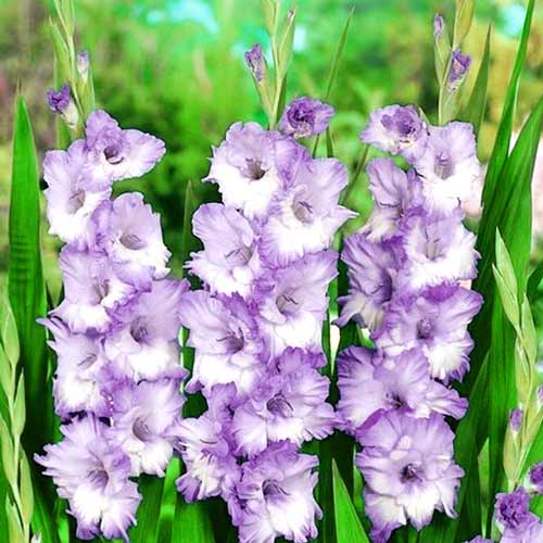 Купуйте цибулини гладіолуса Frost Blue — цей сорт однаково прекрасний в якості акценту на клумбі або в міксбордері. Він добре підкреслює теплоту чорнобривців, ніжність гіпсофіли або екстравагантність декоративного соняшника, не втрачаючи індивідуальності.