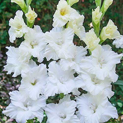 Замовте цибулини гладіолуса Snowy Frizzle — їх білосніжні суцвіття будуть прикрашати ваш квітник все літо, створюючи відчуття свіжості навіть у найспекотніші дні.