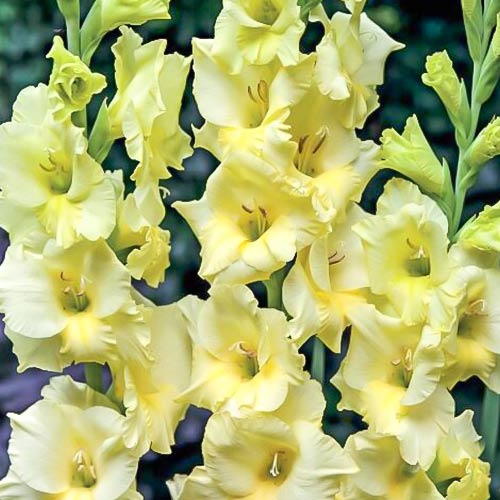Гладіолус великоквітковий Деббянн дає колосовидне стебло, що покрите 20−25 бутонами. До кінця літа розпускається чудовими ніжно-жовтими квітками, які схожі на крила метелика. Серцевина має салатово-лимонне забарвлення. Краї пелюсток гофровані.