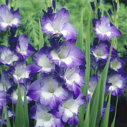 Особливості його забарвлення заворожують: у бутоні квітка темно-фіолетова, майже чорна, при розпусканні відкриває блідо-бузкову серединку з білим язичком. У двохрядному колосоподібному квітконосі: третина довжини – в бутонах і дві третини – у розквітлих в усій красі великих квітках розміром 12-15 см. Замовте цибулини гладіолуса великоквіткового Кінгс Лінн, і фіолетові метелики стануть прикрасою вашого саду.