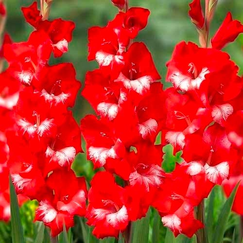 Товсте пряме стебло рослини досягає метрової висоти. Воно не має відгалужень. Листя яскраво-зелене, лінійно-мечоподібне. Великі лійкоподібні квітки зібрані в розкішні суцвіття у формі колоса. Деякі пелюстки трохи гофровані, що надає рослині особливої краси. Замовте бульбоцибулини гладіолусу великоквіткового Спарклер – яскраві рослини стануть вишуканою окрасою клумб і квітників!