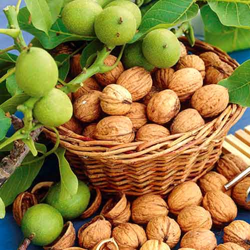 Горіх волоський (грецький) Урожайний – популярний сорт, який вирощують на всій території України. Горіхи великі, тонкошкірі, дуже смачні, дозрівають в серпні-вересні, легко витягуються «метеликом». Дерева сильнорослі, висотою до 7 метрів.