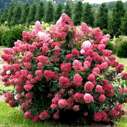 Гортензія метельчата Пінк Квін – чудовий квітучий багаторічник з рожевими бутонами. Вони розпускаються з липня по жовтень, і при хорошому догляді під час цвітіння чагарник нагадуватиме пухнасту кулю, густо усипану суцвіттями. Їх довжина сягає 30 см. Висота чагарнику – 2-3 м, а для того щоб йому не було тісно, між декількома рослинами бажано залишати до 4-5 м простору. Замовляйте саджанці гортензії метельчатої Пінк Квін для посадок одиночно й в групах та милуйтеся пишним цвітінням більше 4 місяців!