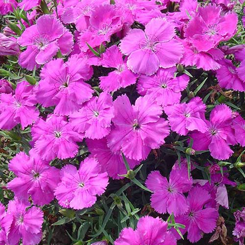 Гвоздика Діана F1 Блубері - приваблива декоративна рослина з тонким видовженим листям. Квіти великі, яскраві, з махровими краями пелюсток. Кущі низькорослі, до 25 см, з компактною кореневою системою. Це робить гвоздику чудовим вибором для невеликого саду, вирощування в горшках та кашпо, а також для декору доріжок та бордюрів, обрамлення клумб.