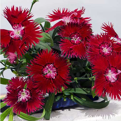 Гвоздика Супра F1 Кримсон - це ефектна квітка з вражаюче насиченим забарвленням та ніжними ажурними пелюстками. Це однорічна в наших широтах рослина, яку висаджують у відкритий ґрунт насінням або розсадою. Цей гібрид особливо популярний серед садівників, оскільки при висоті куща 15-20 см розмір квітів сягає до 5 см. Гвоздику Супра Кримсон вирощують не тільки на клумбах, а й у горщиках, кашпо та бордюрах.