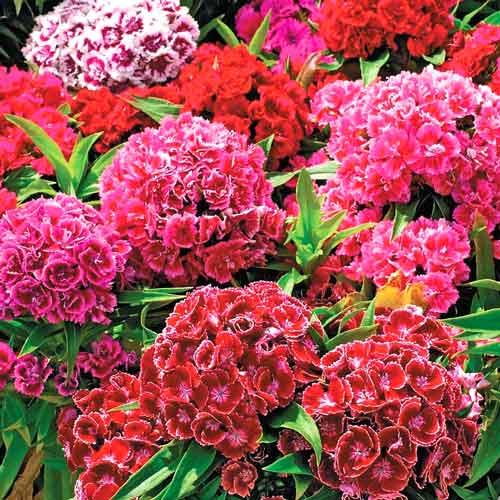 Гвоздика турецька Піноккіо, суміш забарвлень – набір насіння низькорослої гвоздики з величезними ефектними квітами для вирощування на килимових клумбах, в рабатках, альпінарії. Замовити насіння турецької гвоздики Піноккіо потрібно раніше, адже на розсаду рослину висаджують із кінця січня. Пишні кущики гвоздики прикрашають розкішні округлі суцвіття яскравих забарвлень, які випромінюють пряний аромат – культуру можна вирощувати в ароматних клумбах.