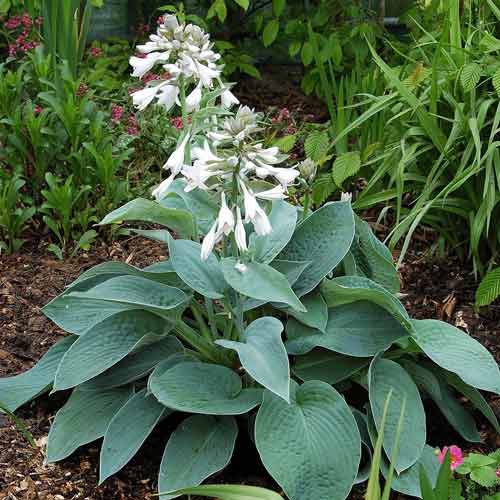 Біг Дедді – потужна велика хоста, утворює кущі заввишки до 60 см і шириною до 120 см. Темно-блакитне листя має виражену гофровану текстуру. Воно велике, розміром 30х20 см, чашоподібної форми із загостреними кінчиками. У липні на високих квітконосах розпускаються світло-блакитні дзвоники. Купіть кореневище хости Біг Дедді, і на вашій ділянці оселиться благородний пишний кущ, який радує своїм виглядом протягом усього теплого сезону.