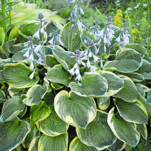Хоста Крістмас Трі (різдвяне дерево) — це пишний кущ діаметром близько метра з широким серцеподібним листям, яке прикрашене білою облямівкою. До осені рослина викидає високий квітконос з дзвінкоподібними світло-лавандовими квітками.