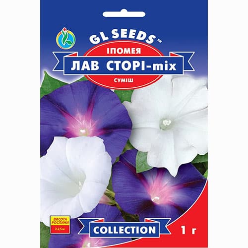 Іпомея Лав Сторі - Популярна декоративна рослина, без якої неможливо уявити не один садок. Ця ліана виростає до 3м, має серцеподібне листя і великі квіти оригінальної форми, за яку рослину називають "грамофончиками". Віддають перевагу пухкому поживному грунту. Незамінна рослина для прикраси та озеленення огорож, альтанок, пергол, балконів. Цвіте з червня до вересня. Вирощується посівом у ґрунт у травні через 30-45 см. Перед посівом насіння замочують на 24 години