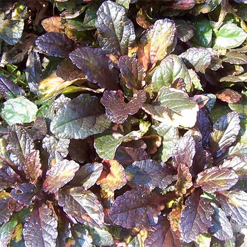 Горлянка (Живучка) Мультиколор - - оригінально забарвлена, живописна низькоросла рослина. Її округле листя зібране в розетки, вкриті численними фіолетовими, рожевими, жовтими, кремовими, коричневими, помаранчевими та бронзовими плямами. Колосовидні суцвіття складаються з дрібних блакитних квітів і мають висоту 15 - 20 см. Цвіте горлянка в кінці травня - першій половині червня. Швидко розростається та вкриває землю різнобарвним килимом.