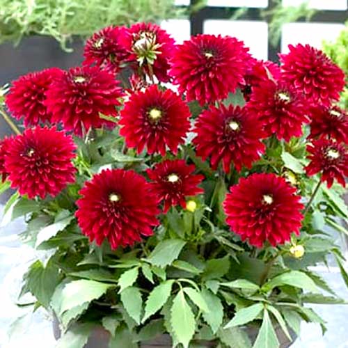 Жоржина Фрівелос Глоу - це дуже красивий бордюрний сорт з довгим пишним цвітінням. Квіти яскраві темно-вишневого кольору з темним центром і білим вічком. Прекрасний сорт для створення живих бордюрів, рабаток, посадки в контейнери. На кожній рослині формується великий букет із квітів діаметром 5-10 см. Кущ заввишки 35 см. Рослина теплолюбна, восени корінь викопують для зберігання в прохолодному місці.