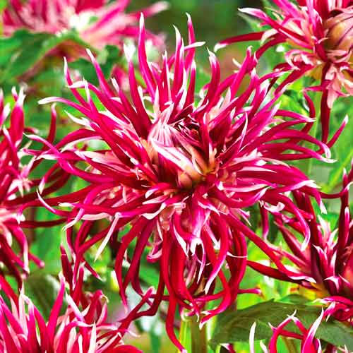 Жоржина Холіхіл Спайдер Вумен - це неймовірно красивий сорт з розкішним цвітінням. Квіти об'ємні, складаються з безлічі голчастих пелюсток червоного кольору з білим гострим кінчиком. Чудовий сорт для створення яскравого акценту в ландшафтних композиціях, посадки біля парадного входу, міського озеленення. На кожному кущі налічується до 10-12 квітів діаметром 15-20 см. Рослина заввишки 100 см. Бульби не зимують у відкритому ґрунті, їх викопують з настанням холодів, зберігають у прохолодному місці.