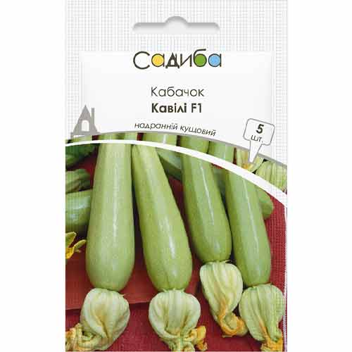 Кабачок Кавілі F1 – кущовий гібрид, який подарує вам плоди одним з перших. Кабачки циліндричні із ніжно-зеленуватою шкіркою та молочною м'якоттю. За консистенцією вона однорідна, має ледь помітний характерний присмак. Врожай зазвичай знімають, коли плоди завдовжки досягнуть 16-20 см, але навіть при переростанні ніжний смак м’якушу не втрачається.