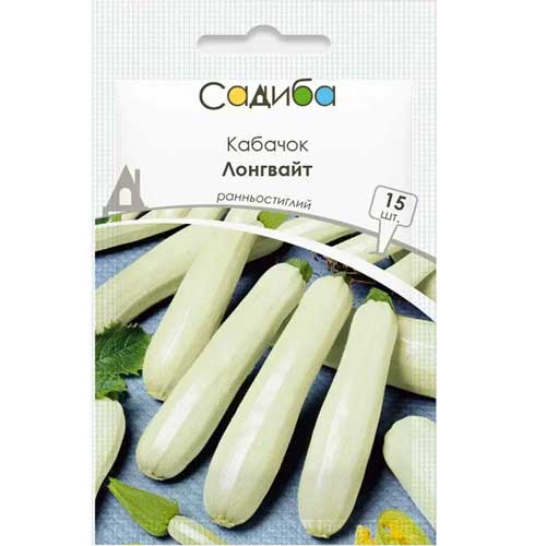 Кабачок Лонгвайт - ранньостиглий урожайний кущовий сорт, термін дозрівання 40-45 днів. Рослина кущового типу, формує компактний кущ. Плоди майже білого кольору з тонкою шкіркою, булавоподібної форми, довжиною 20-25 см. М'якоть кремово-біла, щільна, м'ясиста, високих смакових якостей.