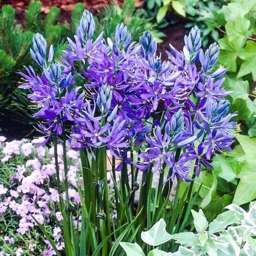 Камасія Квамаш - ідеальне рішення для всіх любителів квітів, які шукають цікаві та оригінальні рослини для свого саду. Квіти швидко ростуть, і з кожним роком цибулини стають все більшими і щільнішими, з трав'янистим листям інтенсивного зеленого кольору. Влітку з'являються довгі стебла, що закінчуються ажурними суцвіттями з синьо-фіолетових квіток з жовтими тичинками. Камасію можна поєднувати з іншими цибулинними рослинами, кореневищами, а також багаторічниками, наприклад веронікою, ехінацеєю або лавандою. Довгі суцвіття підходять для зрізання і складання з них букетів. Камасія є цінною рослиною в основному завдяки тому, що зацвітає тоді, коли інші цибулинні рослини вже відцвіли.