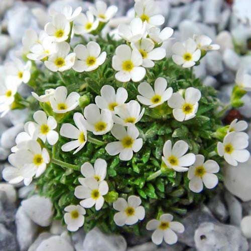 Ломикамінь Голден Фоллс Віт – трав'яниста багаторічна культура з дуже ніжними й зворушливими квітками на довгих квітконосах. У них білі пелюстки й сонячно-жовта серединка. Пік декоративності приходиться на травень – червень, але і в інші пори року рослина не втрачає своєї привабливості завдяки листю. Воно яскраво-зелене, дрібне й густе, зростає щільним пухнастим килимом. Висота культури може вагатися від 15 до 40 см, розростається вона досить швидко, тому при посадці двох і більше рослин варто залишити між ними мінімум по 30 см вільного простору. Замовляйте саджанці ломикаменю Голден Фоллс Віт – він прикрасить ваш альпінарій та кам'янисту гірку або просто послужить зеленим декоративним килимом.