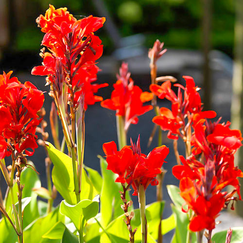 Купуйте кореневища канн Діамант — ця рослина прекрасний варіант для одиночної посадки, оформлення патіо або парадного входу.