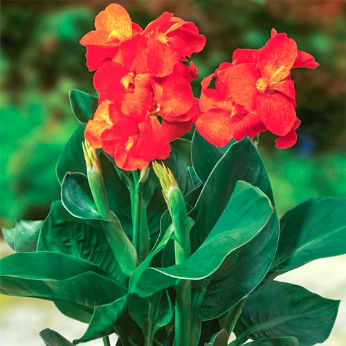 Канна Хеппі Клео (Canna Happy Cleo) – невеличкий багаторічник до півметра заввишки. У нього виразні червоно-помаранчеві бутони, пелюстки прикрашені темним крапом. Красу і ніжність квіток підкреслює широке декоративне листя насиченого темно-зеленого відтінку. Цвітіння триває на протязі всього літа. Рослина гармонійно виглядає у одиночних та групових посадках, доречна по центру клумб або на задньому плані квітників. Прекрасно розвиваються як у відкритому ґрунті, так і у горщиках.