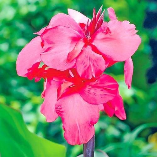 Канна Ватермелон (Canna Watermelon) – чудова багаторічна рослина, колір пелюсток якої дійсно нагадує червону соковиту м'якоть кавуна. Сорт відноситься до середньорослих, його висота становить 50-60 см. Суцвіття починає розпускатися з нижнього бутону. Діаметр кожної квітки досягає 12 см. Проте краса культури полягає не тільки в них, але й у великому зеленому листі з чітко помітними прожилками. Цвітіння триває з липня до вересня – жовтня.
