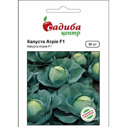 Капуста білоголова Атрія F1 – середньопізній гібрид, який чудово підходить для вживання в свіжому вигляді та зберігання. Голівки можна знімати на 115-120 день після пересадки розсади. Вони округло-пласкі, масою 4-8 кг із відмінною внутрішньою структурою. Капуста толерантна до враження трипсами та стійка до фузаріозу.
