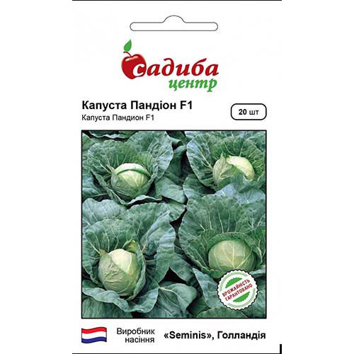 Капуста білоголова Пандіон F1 – надрання гібридна культура, яка призначена для споживання у свіжому вигляді. Рослина компактна, формує кулясті качани. Листя забарвлене в ніжний зелений відтінок, маса досягає 0,8-1,5 кг. Капуста добре зберігається на корені, не розтріскується та транспортується без пошкоджень.