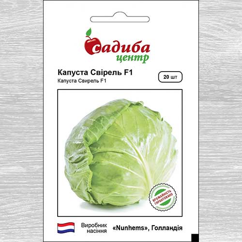 Капуста білоголова Свірель F1 – надранній гібрид, нещодавно виведений селекціонерами, який відрізняється інтенсивним розвитком. Дозріває всього за 45-48 днів. Головки виростають однорідними, їх середня маса сягає 0,8-1,2 кг. Капуста дуже щільна, на смак солодка, без гіркоти.
